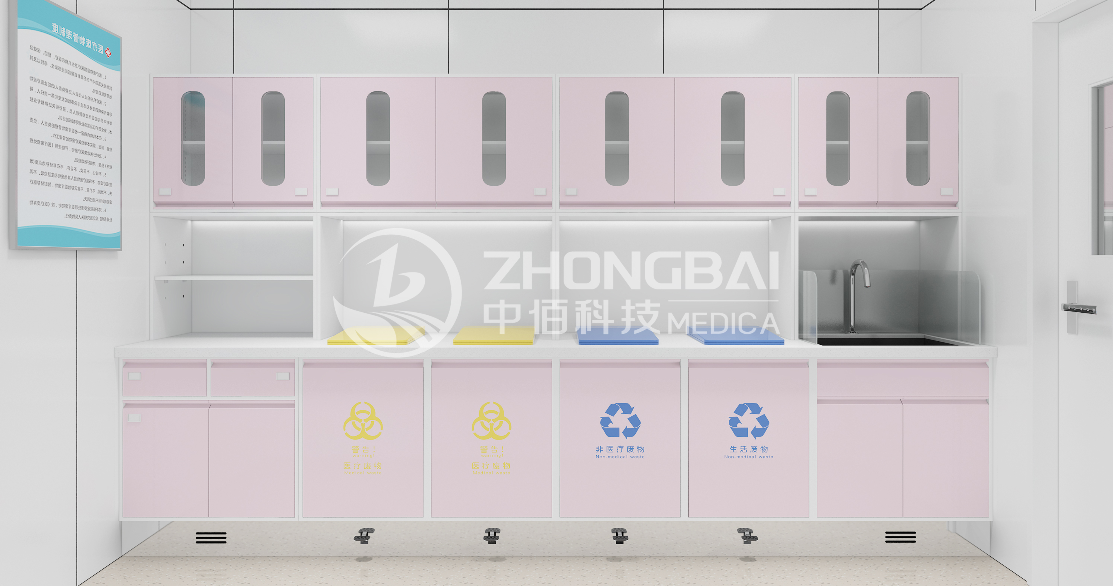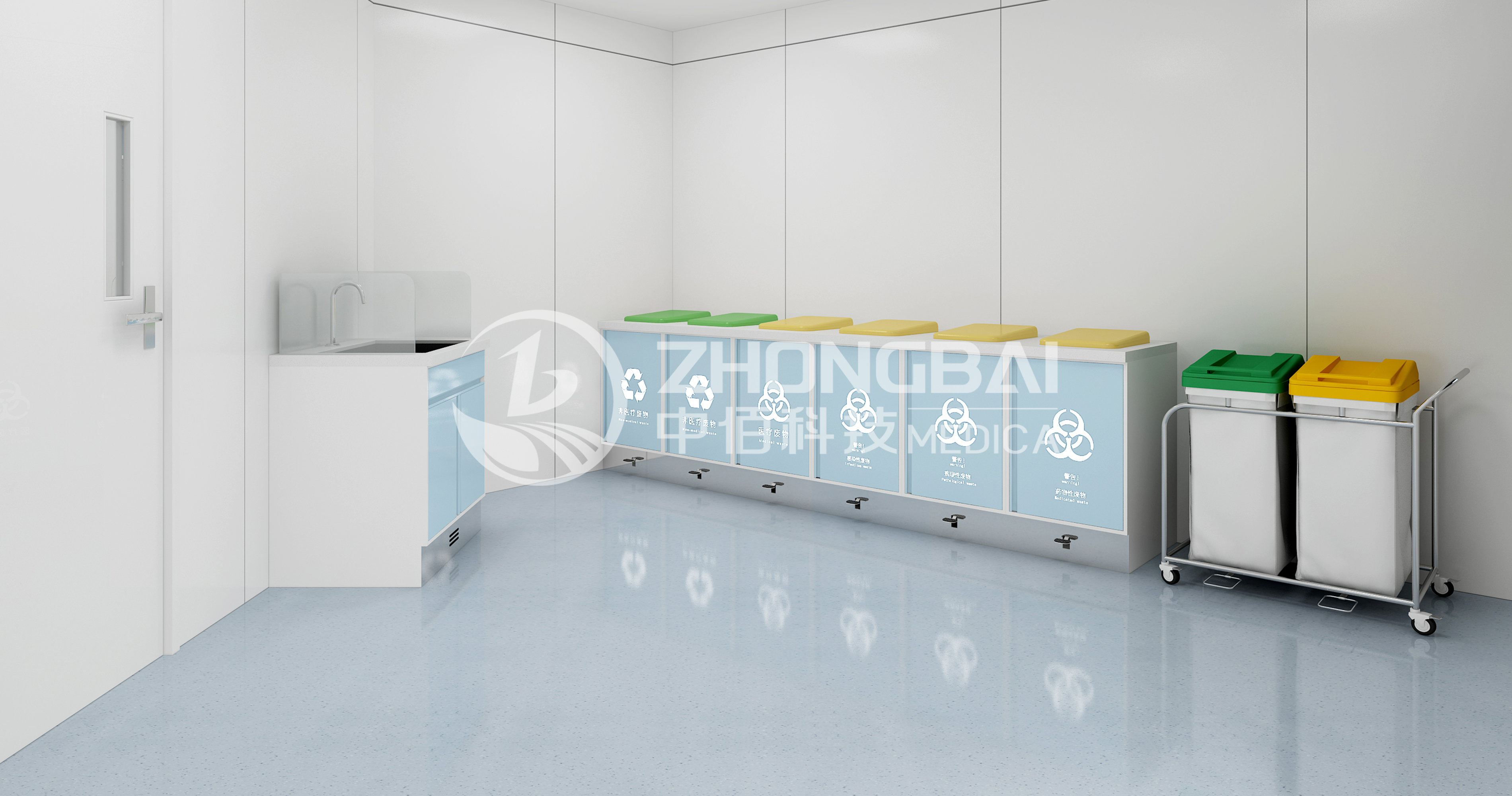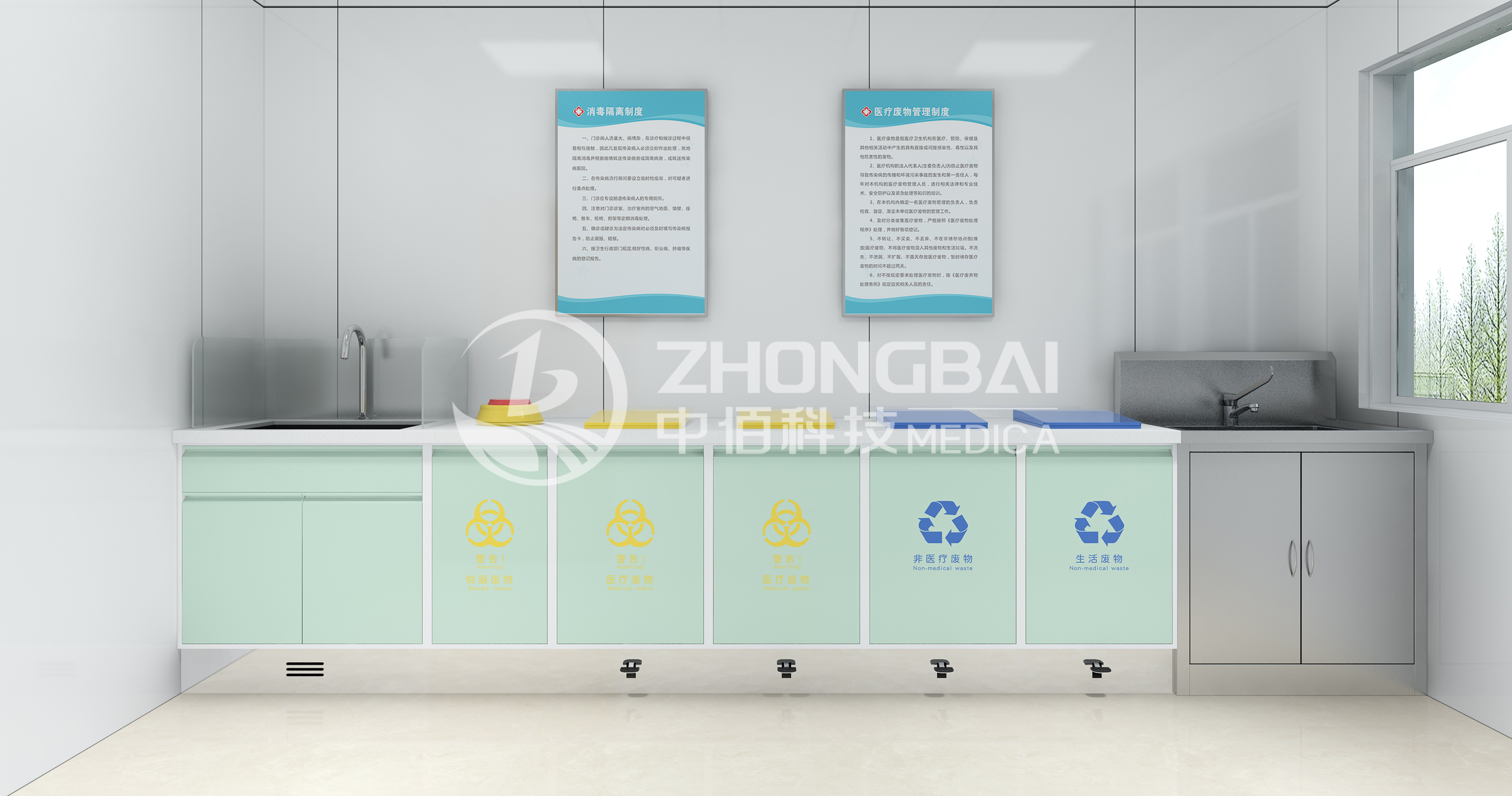 臨時存放治療產(chǎn)生的醫(yī)療廢物及需要浸泡消毒的醫(yī)療物品。