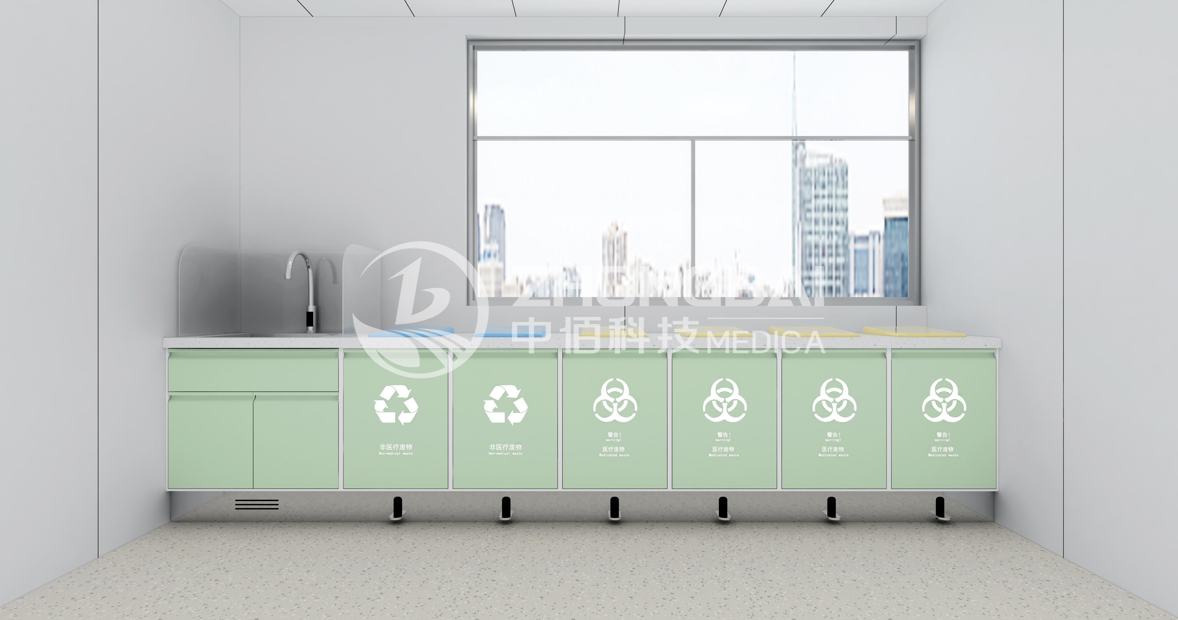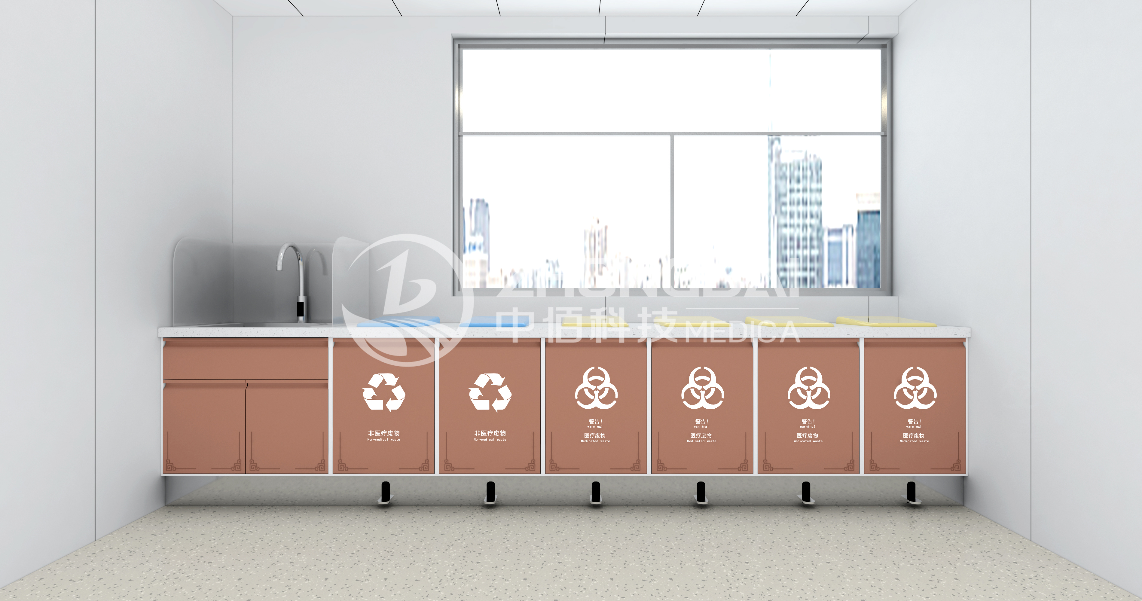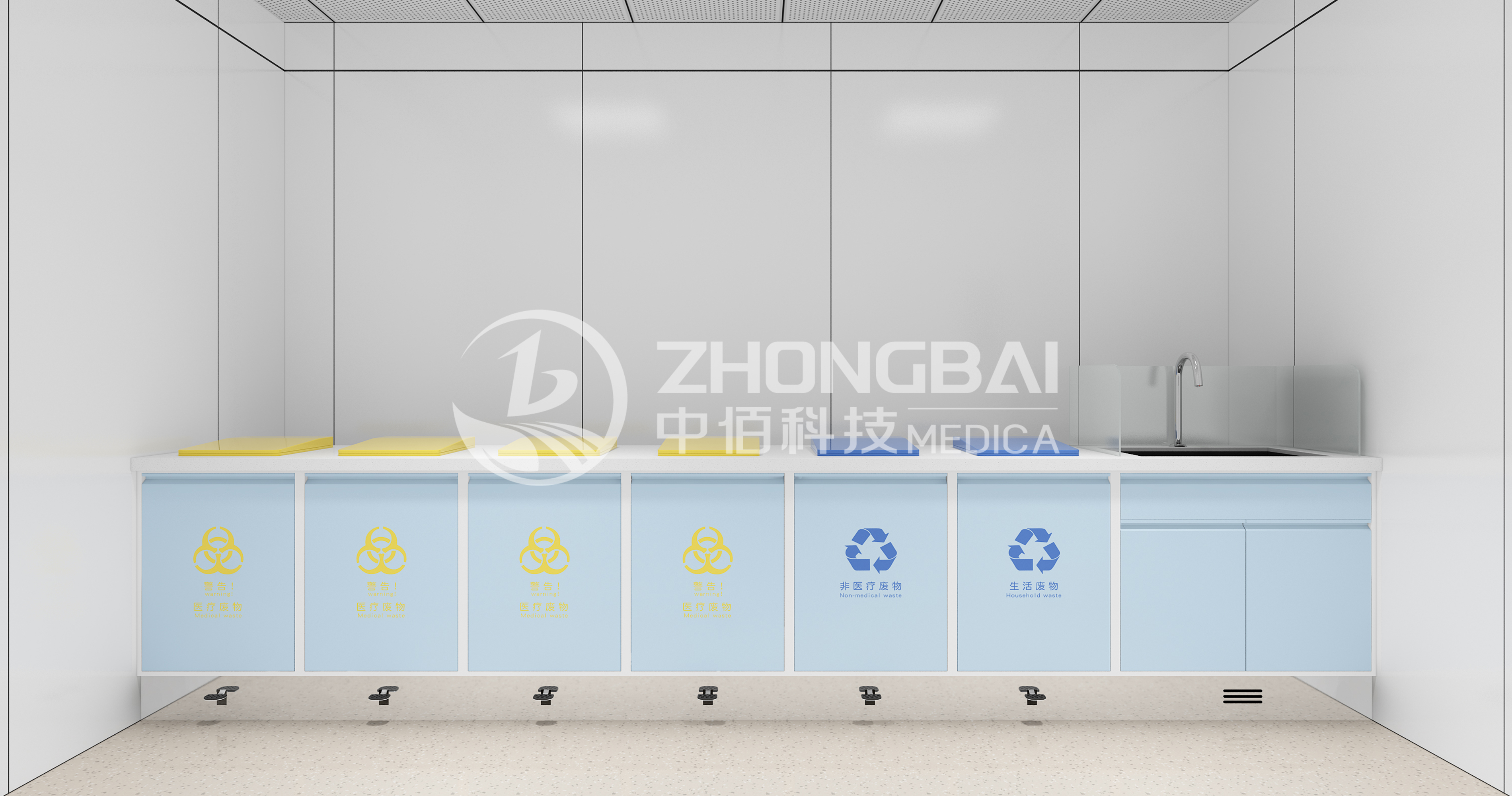 臨時存放治療產(chǎn)生的醫(yī)療廢物及需要浸泡消毒的醫(yī)療物品。