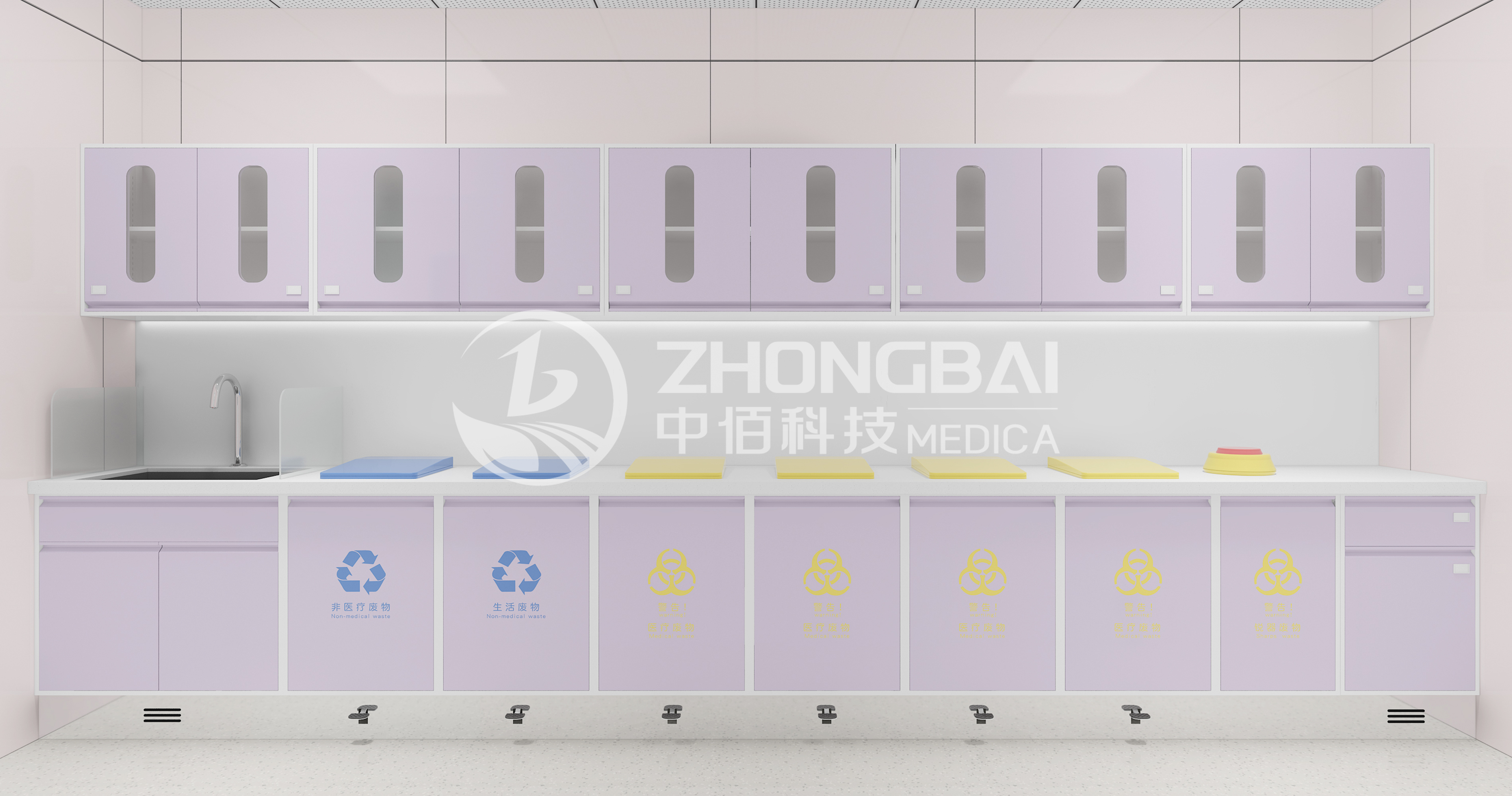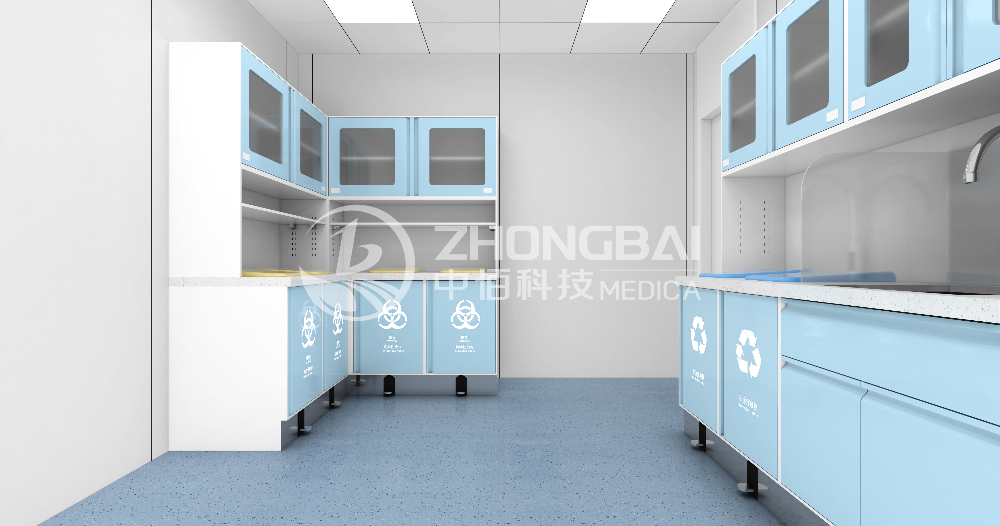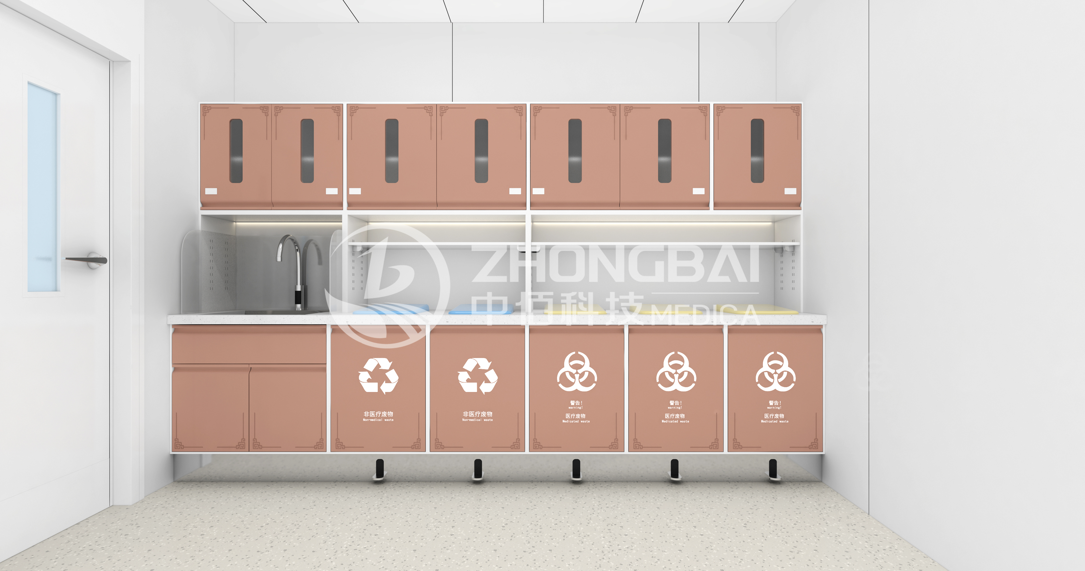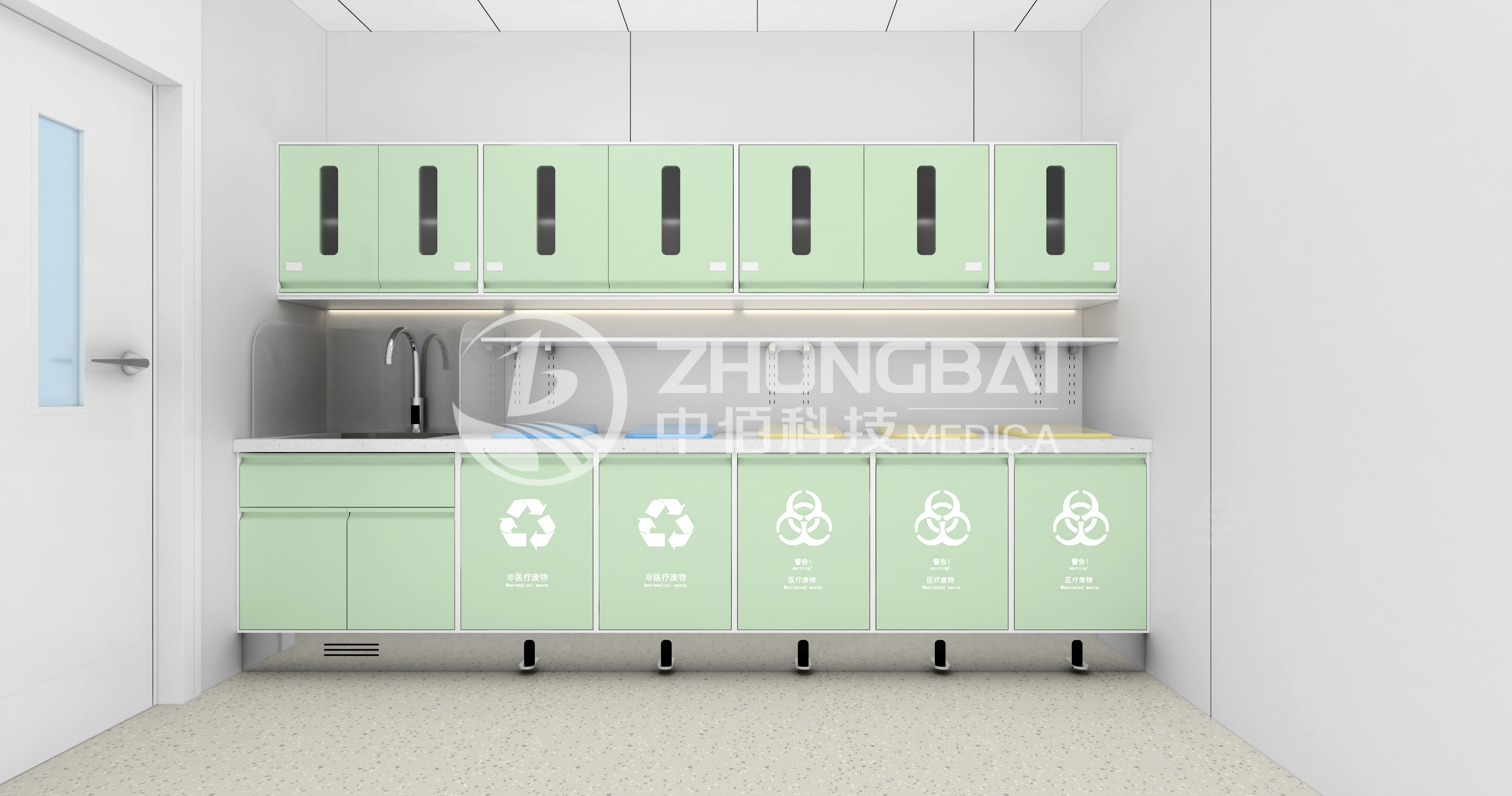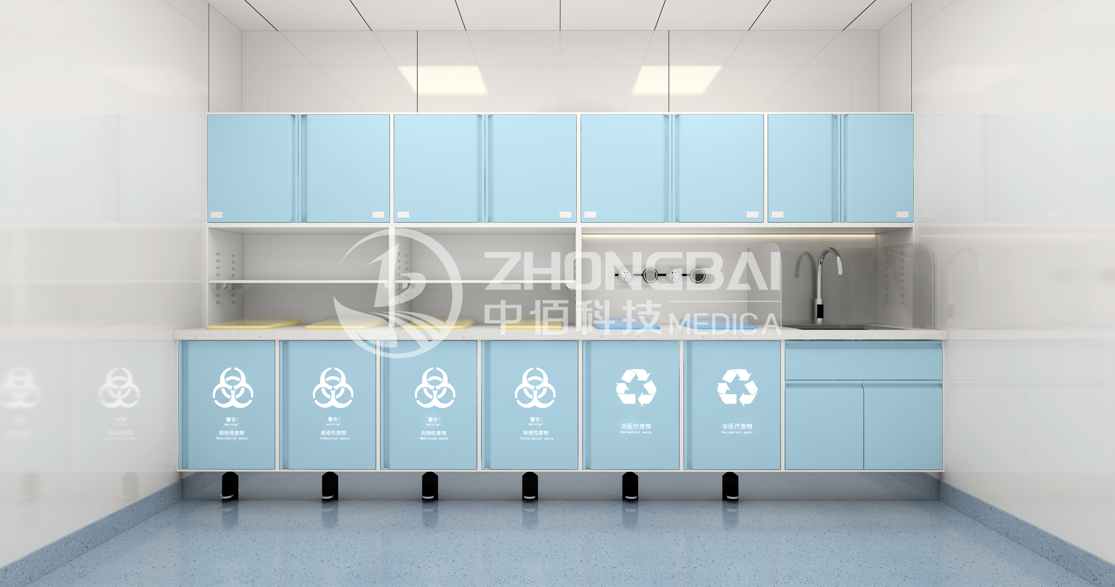 處置室一般在治療室近處,主要為醫(yī)護人員實施皮膚準備及清潔灌腸等操作,臨時存放治療產(chǎn)生的醫(yī)療廢物及需要浸泡消費的醫(yī)療物品的專用工作室。