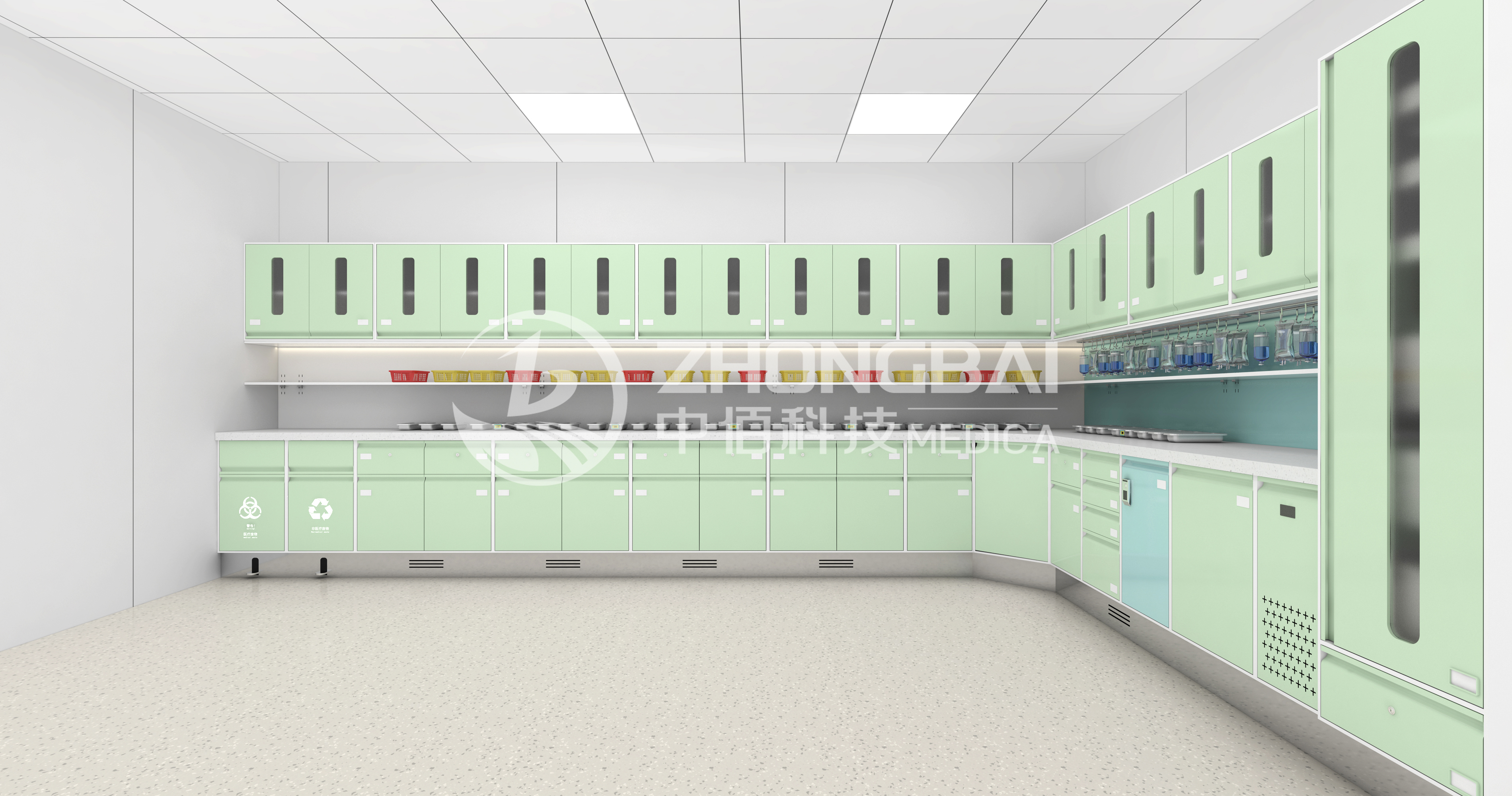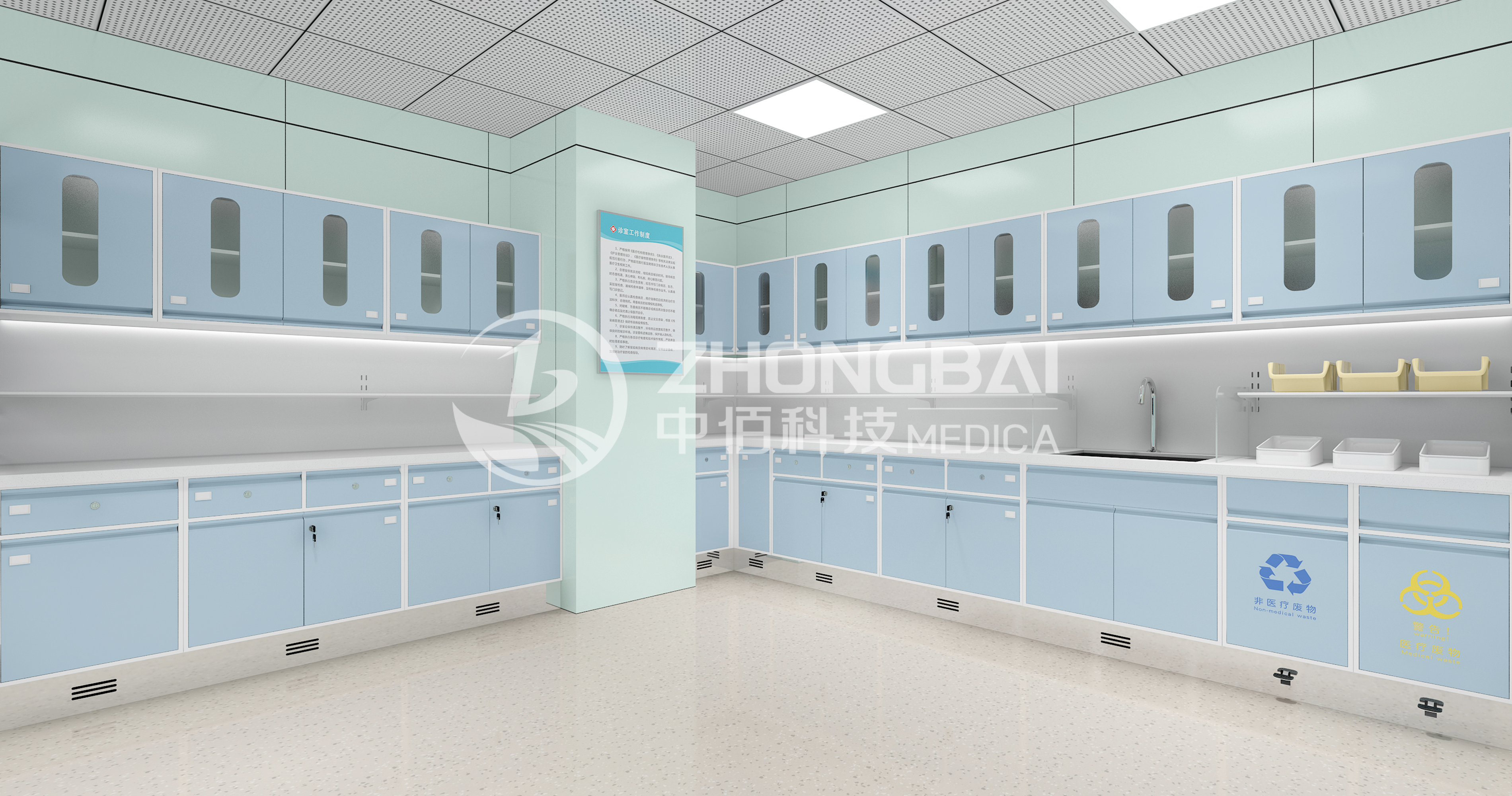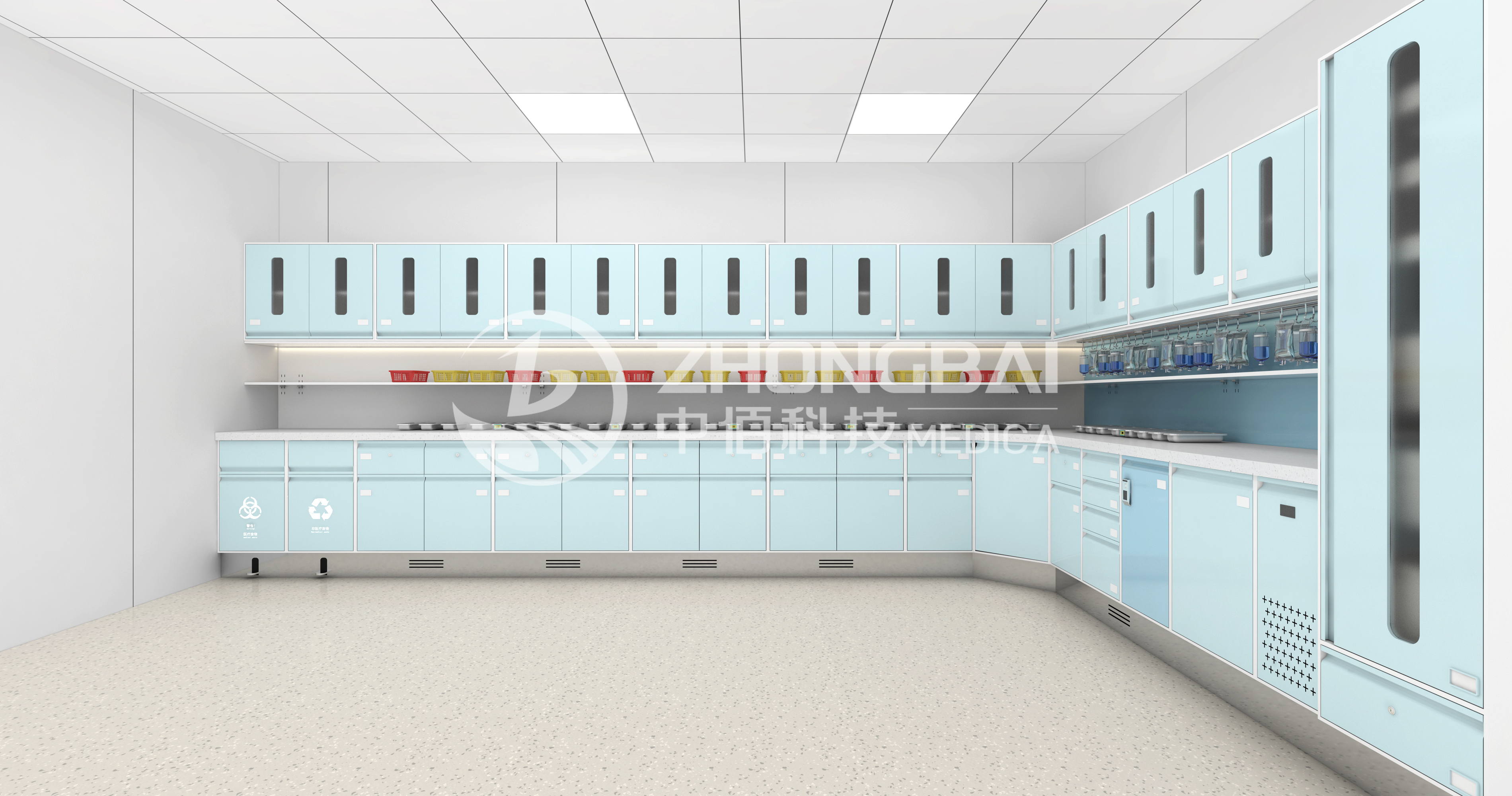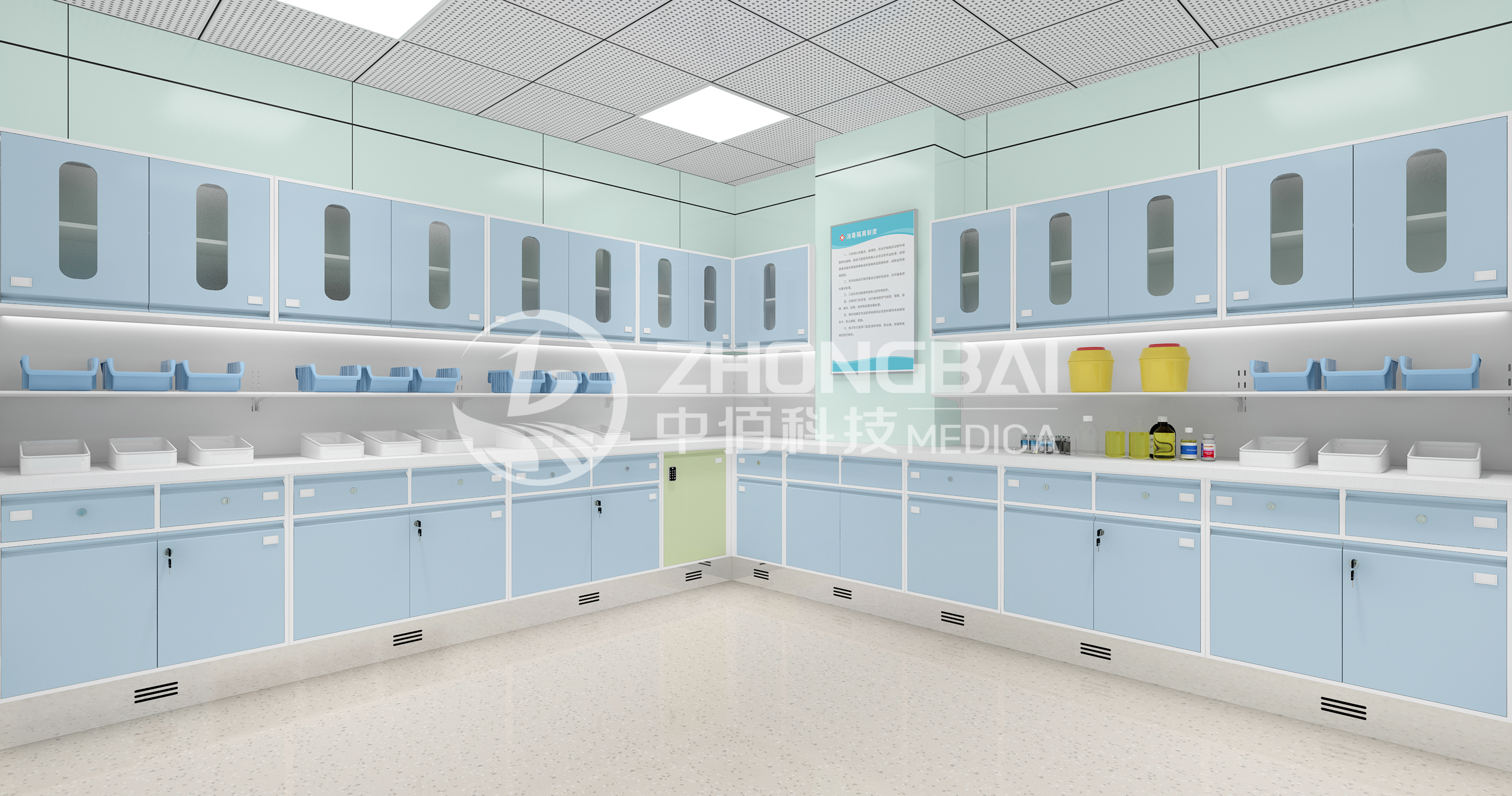 治療室設(shè)在護士工作站附近,主要為醫(yī)護人員進行治療準備、藥液配置的專用工作室。室內(nèi)設(shè)有專用操作臺,壁柜、藥柜、發(fā)藥車等,室內(nèi)需潔污分區(qū)管理。