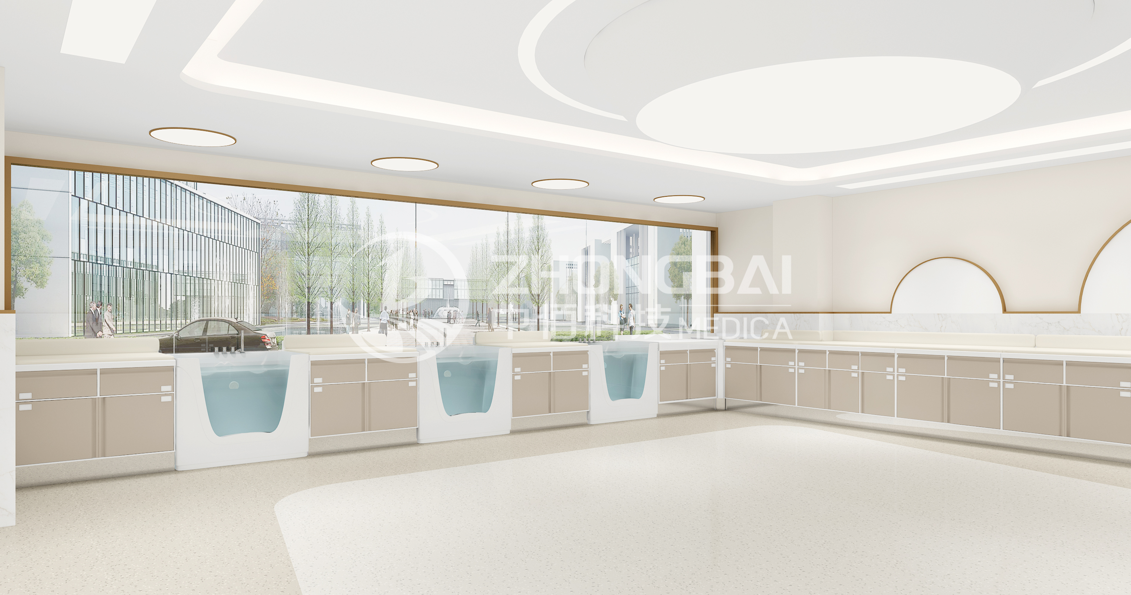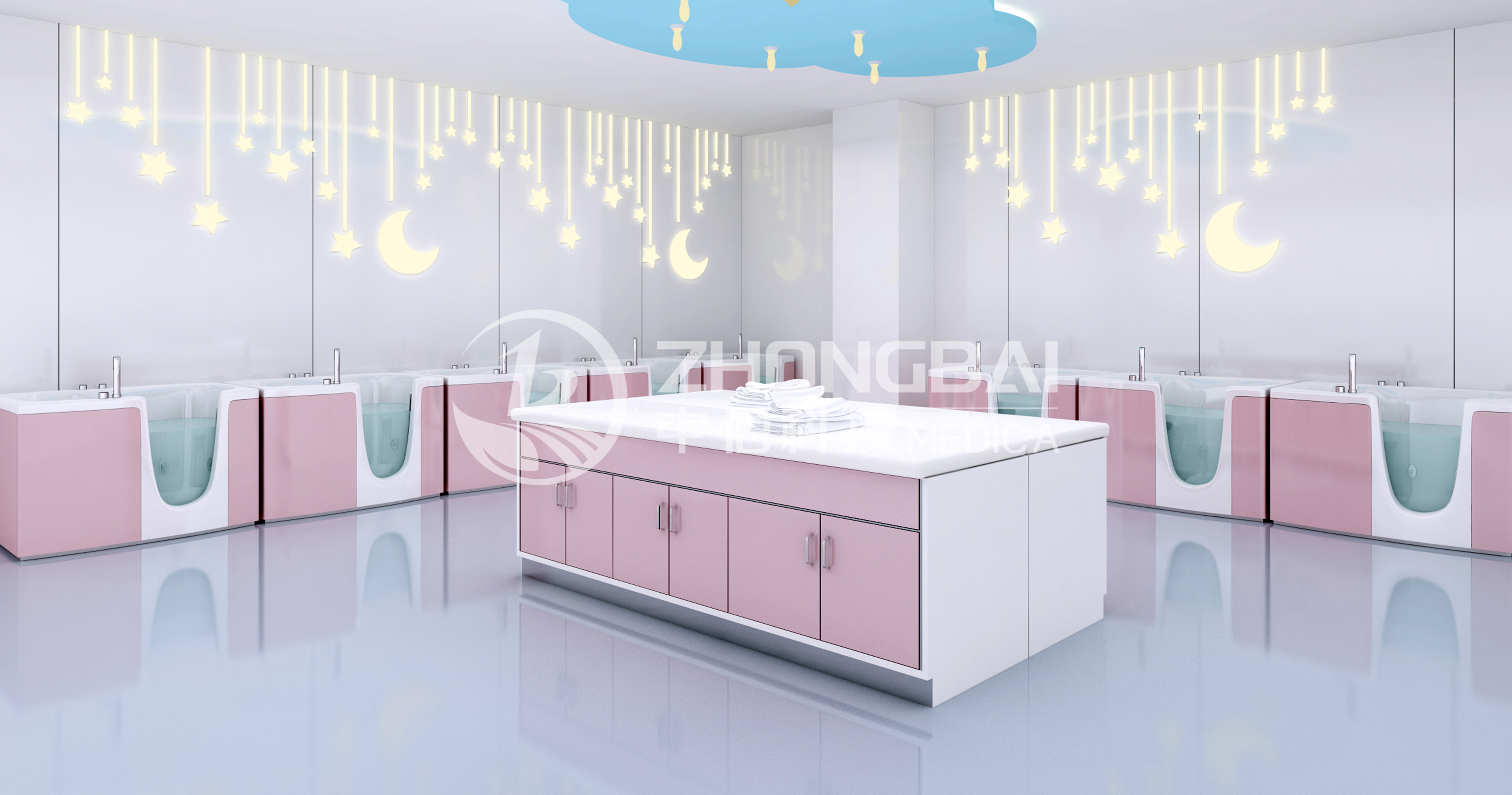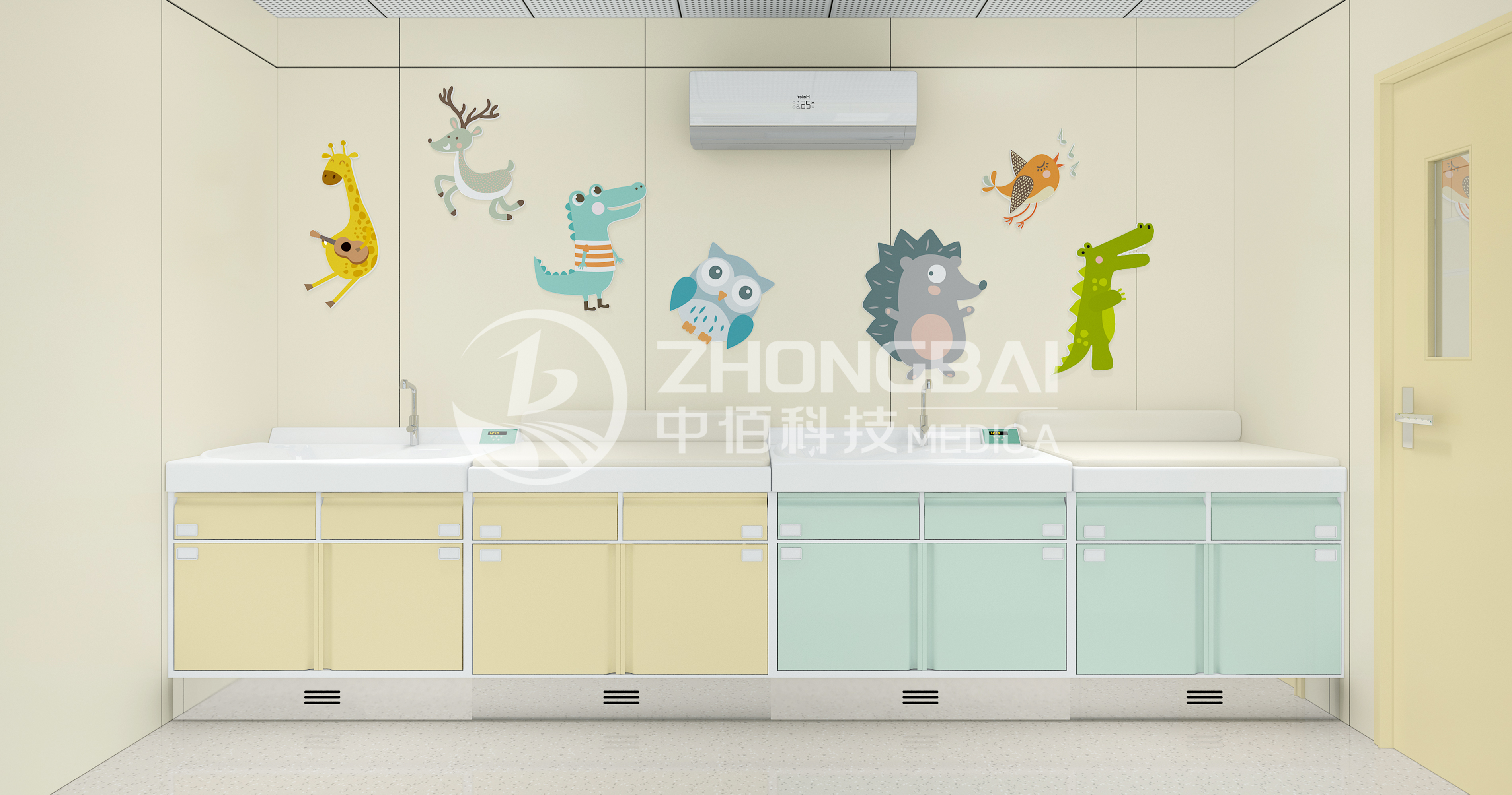 洗嬰室需要結(jié)合新生兒護理工作的模式和環(huán)境,進行整體設(shè)計,注重安全、預(yù)防感染,營造符合嬰幼兒特征的活潑可愛、安全溫馨的場景氛圍。